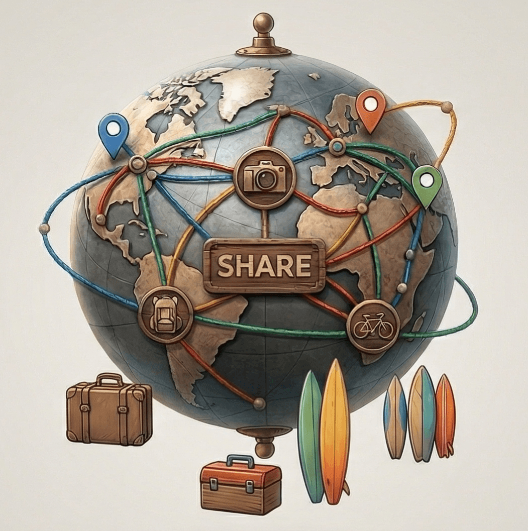 Meet anywhere. Pass your gear to the next traveler.